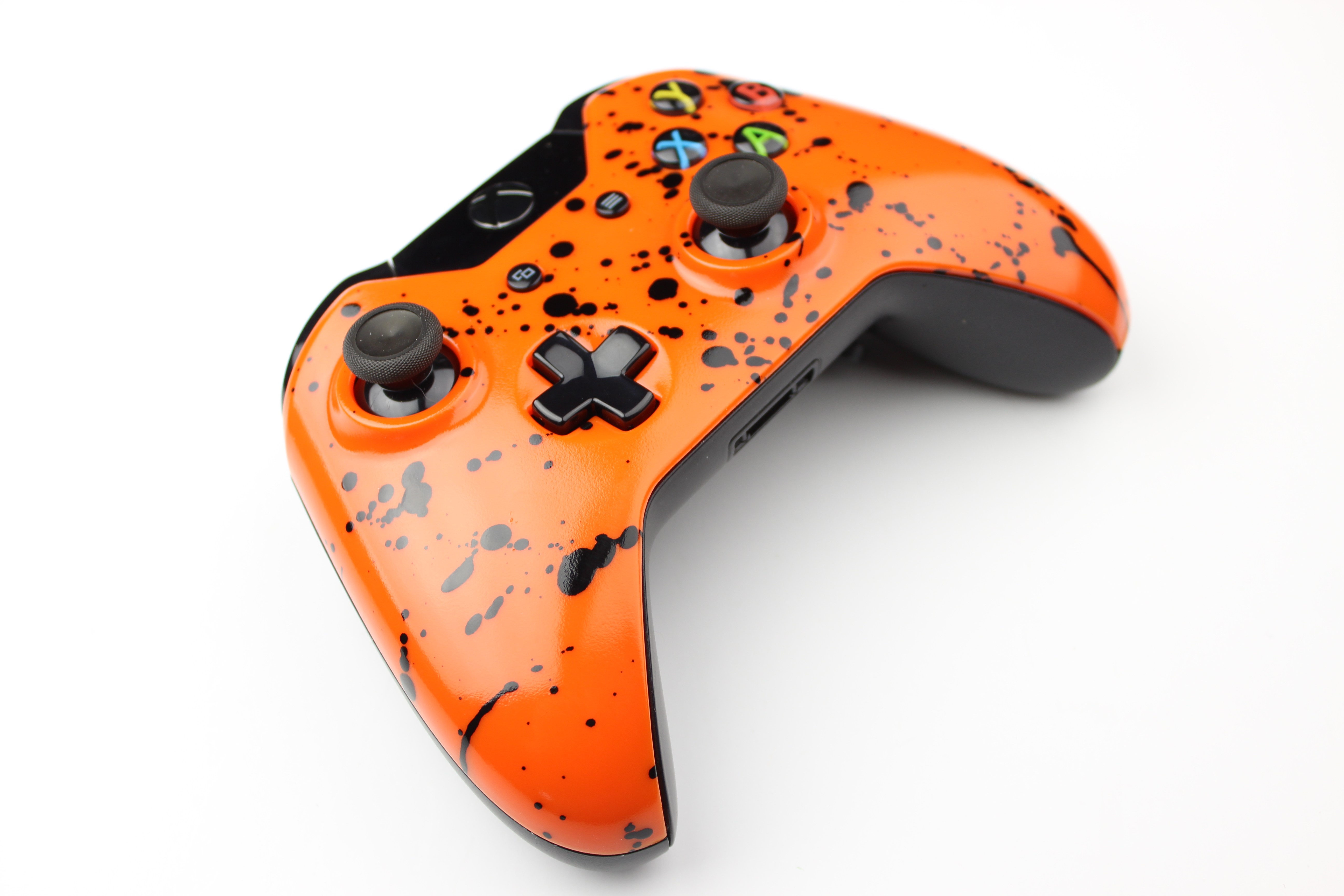 Orange with Black Splatter Xbox One Controller photos and movies
