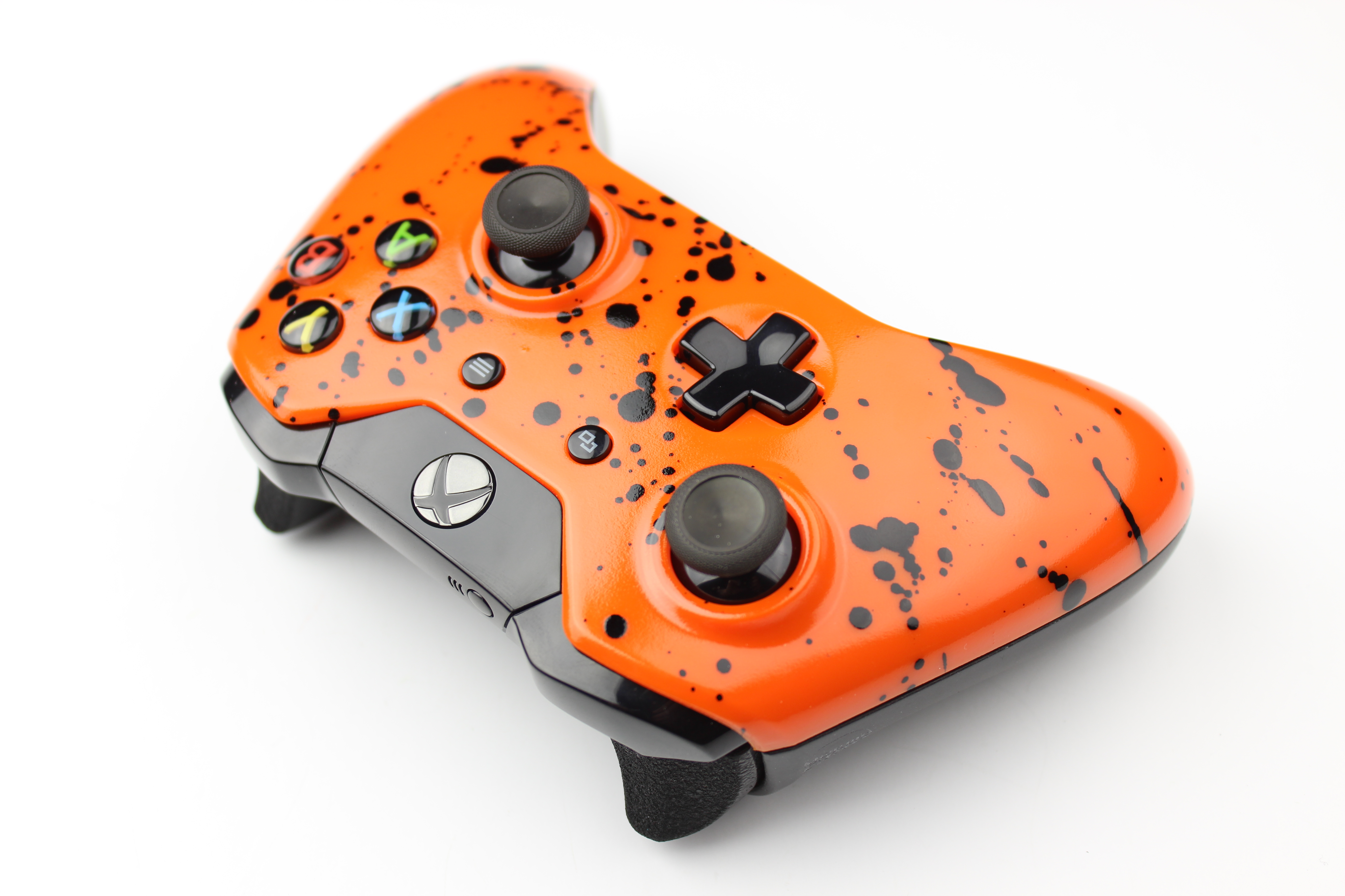 Orange with Black Splatter Xbox One Controller photos and movies