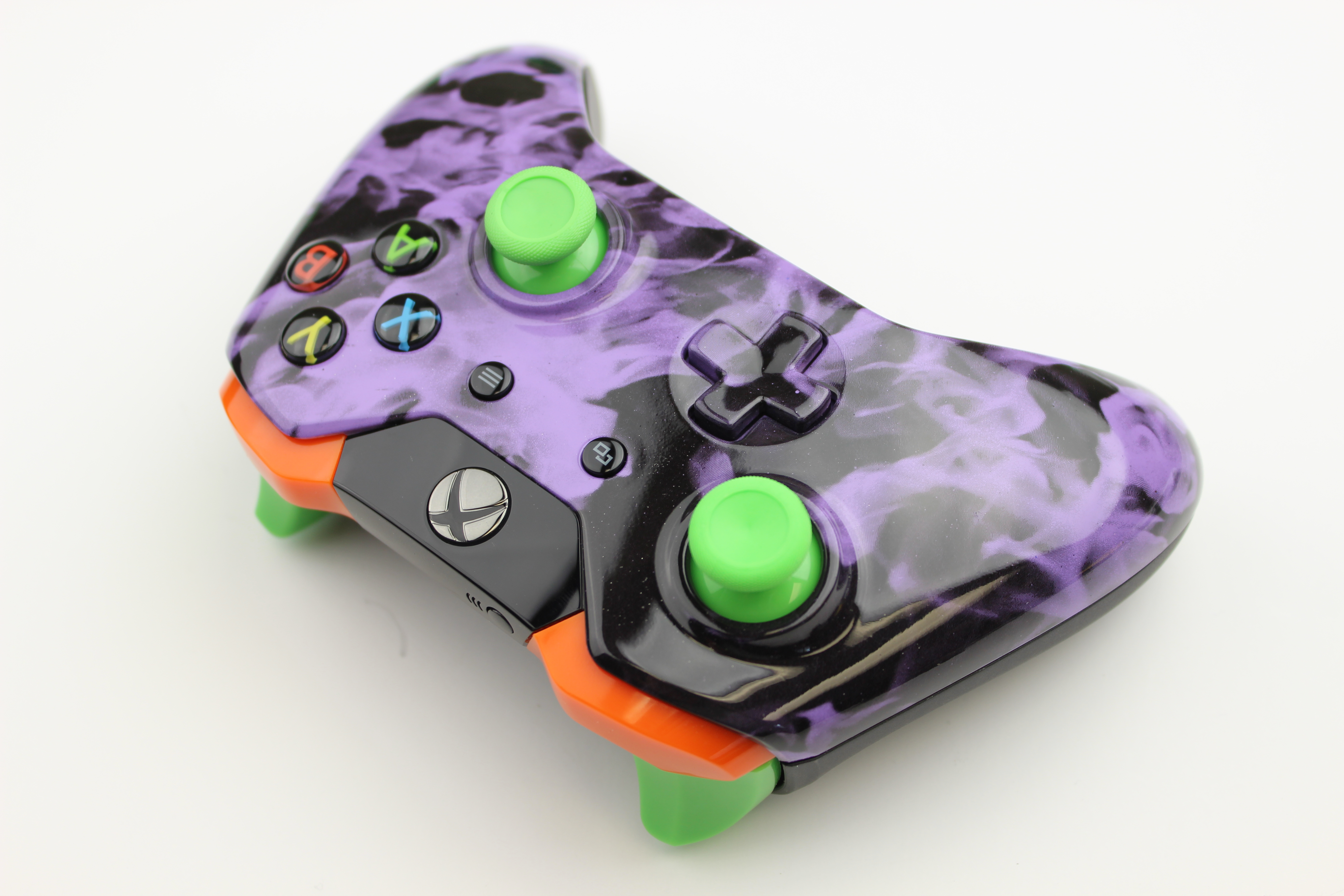 Purple Naughty Flame Xbox One Controller with Green Sticks photos and movies