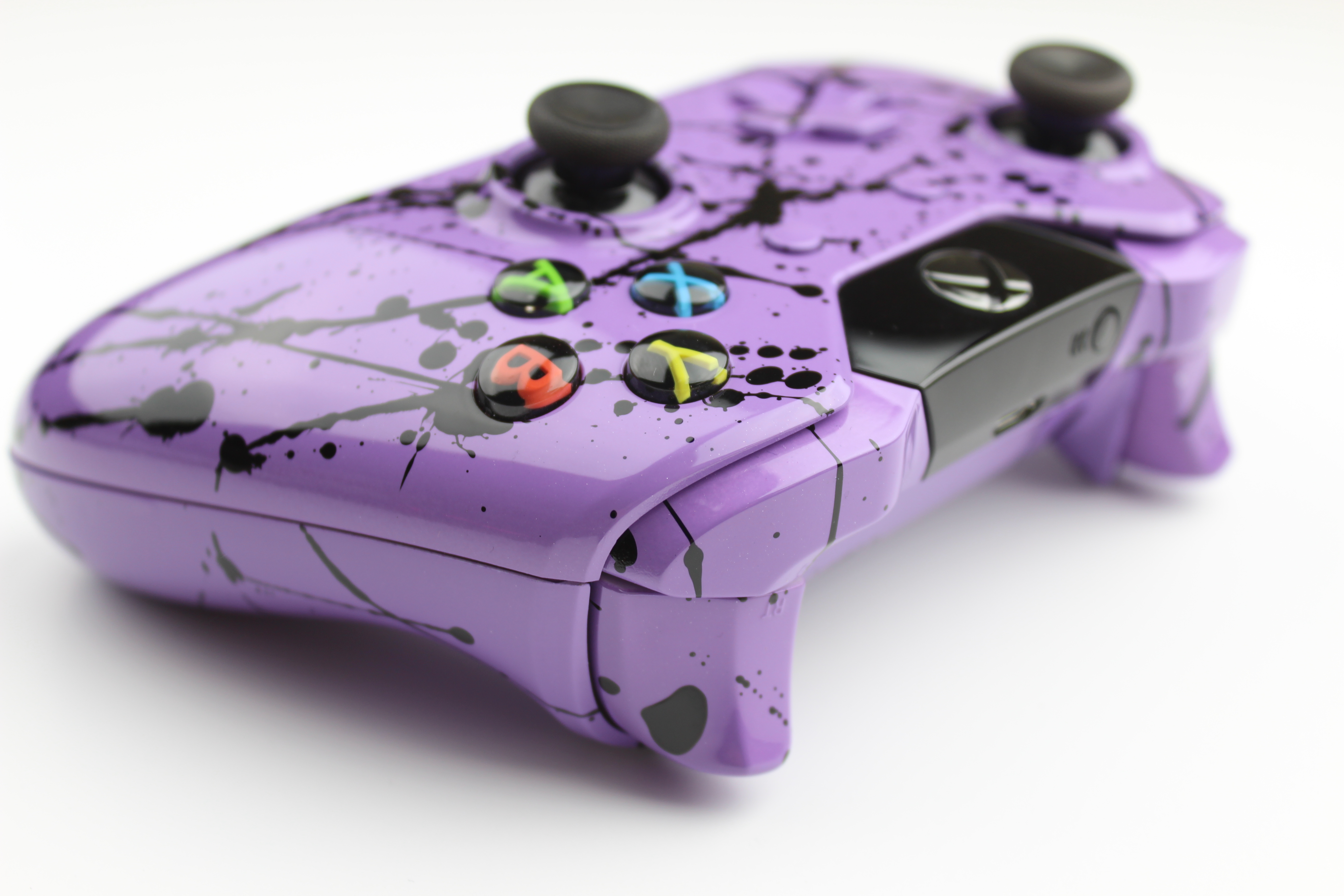 Purple Xbox One Controller with Black Splatter photos and movies