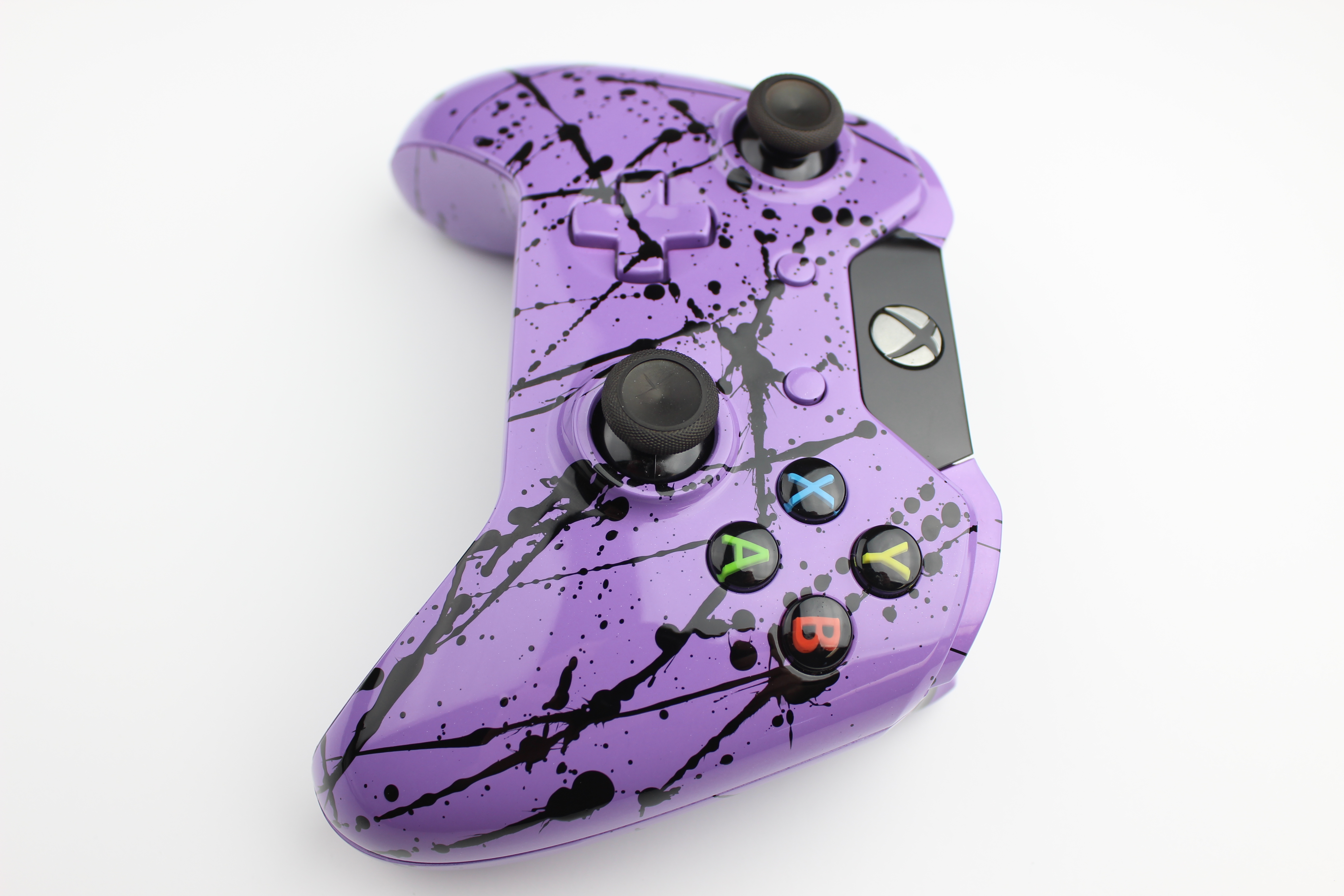 Purple Xbox One Controller with Black Splatter photos and movies