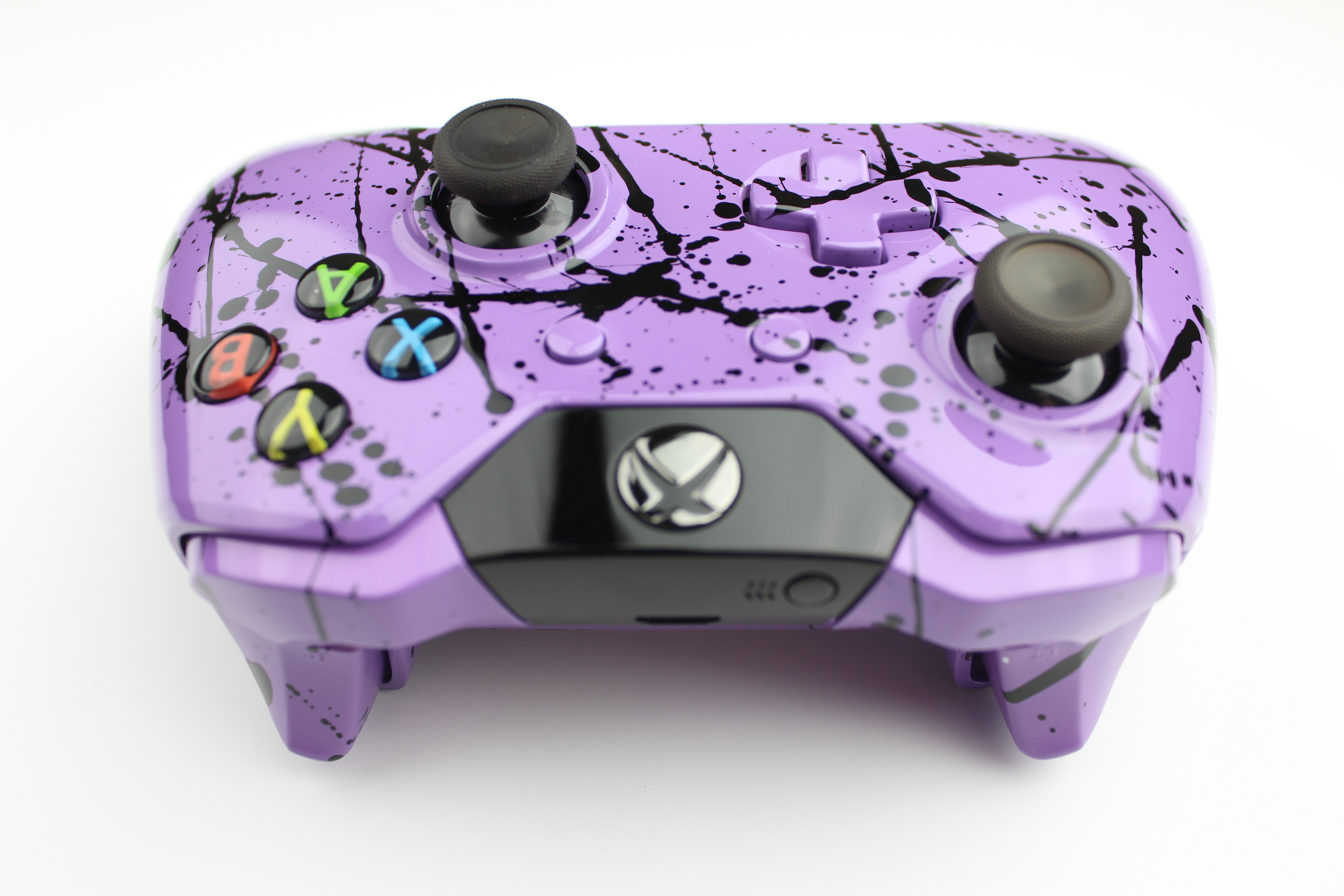 Purple Xbox One Controller with Black Splatter photos and movies
