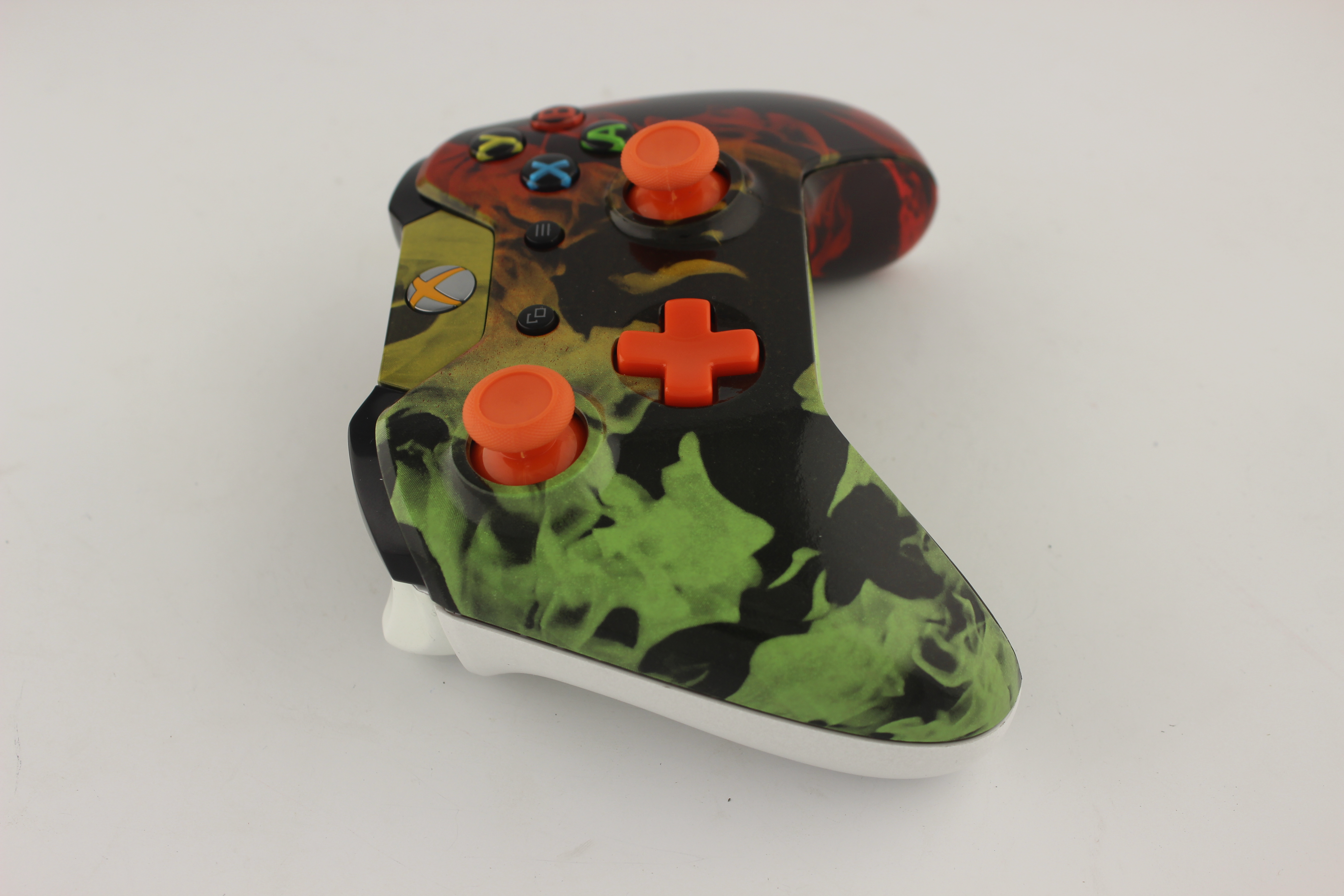 Rasta Naughty Flames Xbox One Controller with orange Sticks photos and movies