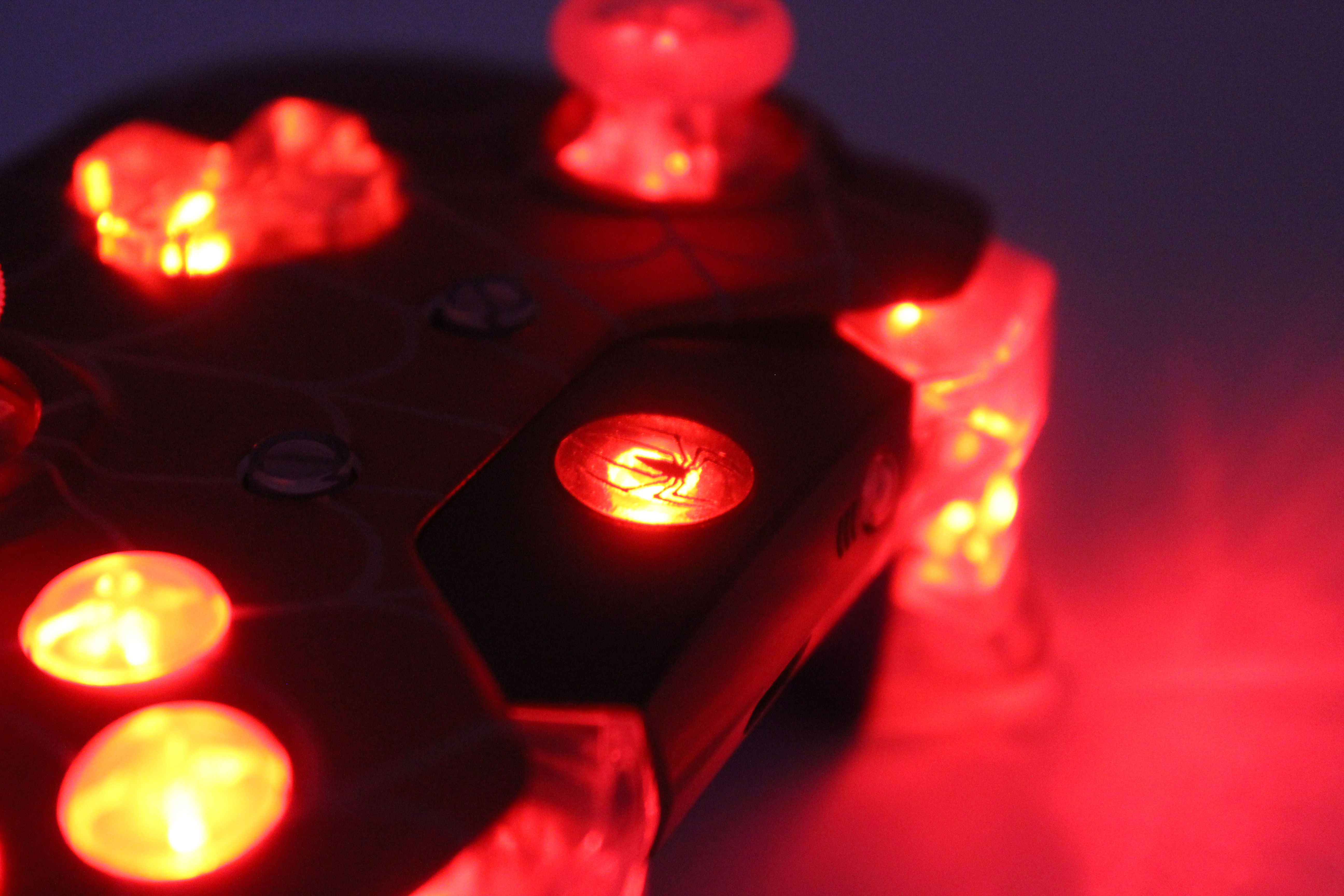Red Chrome White Webs Lit Xbox One Controller photos and movies