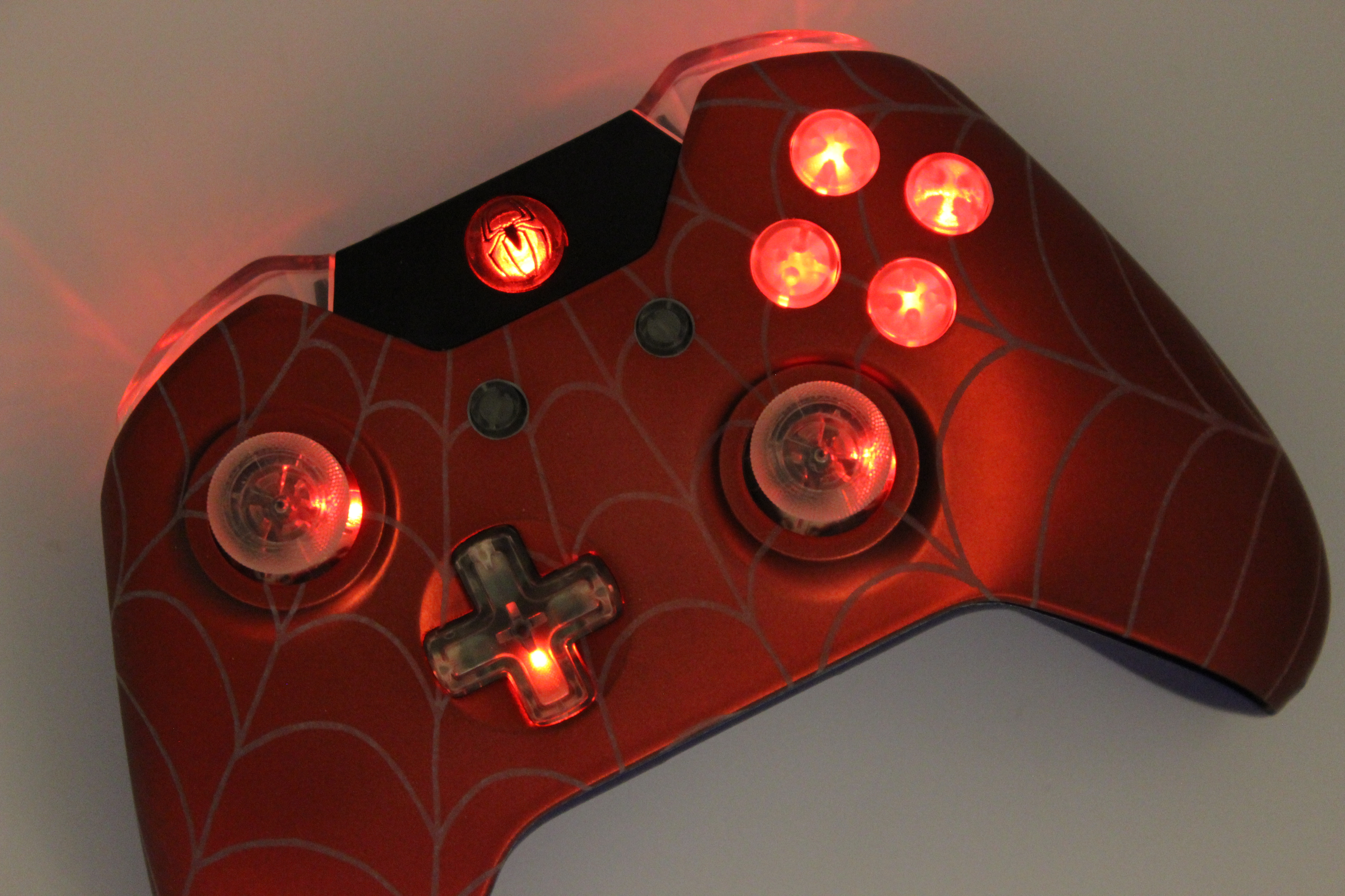 Bookmark and Share: Red Chrome White Webs Lit Xbox One Controller 19