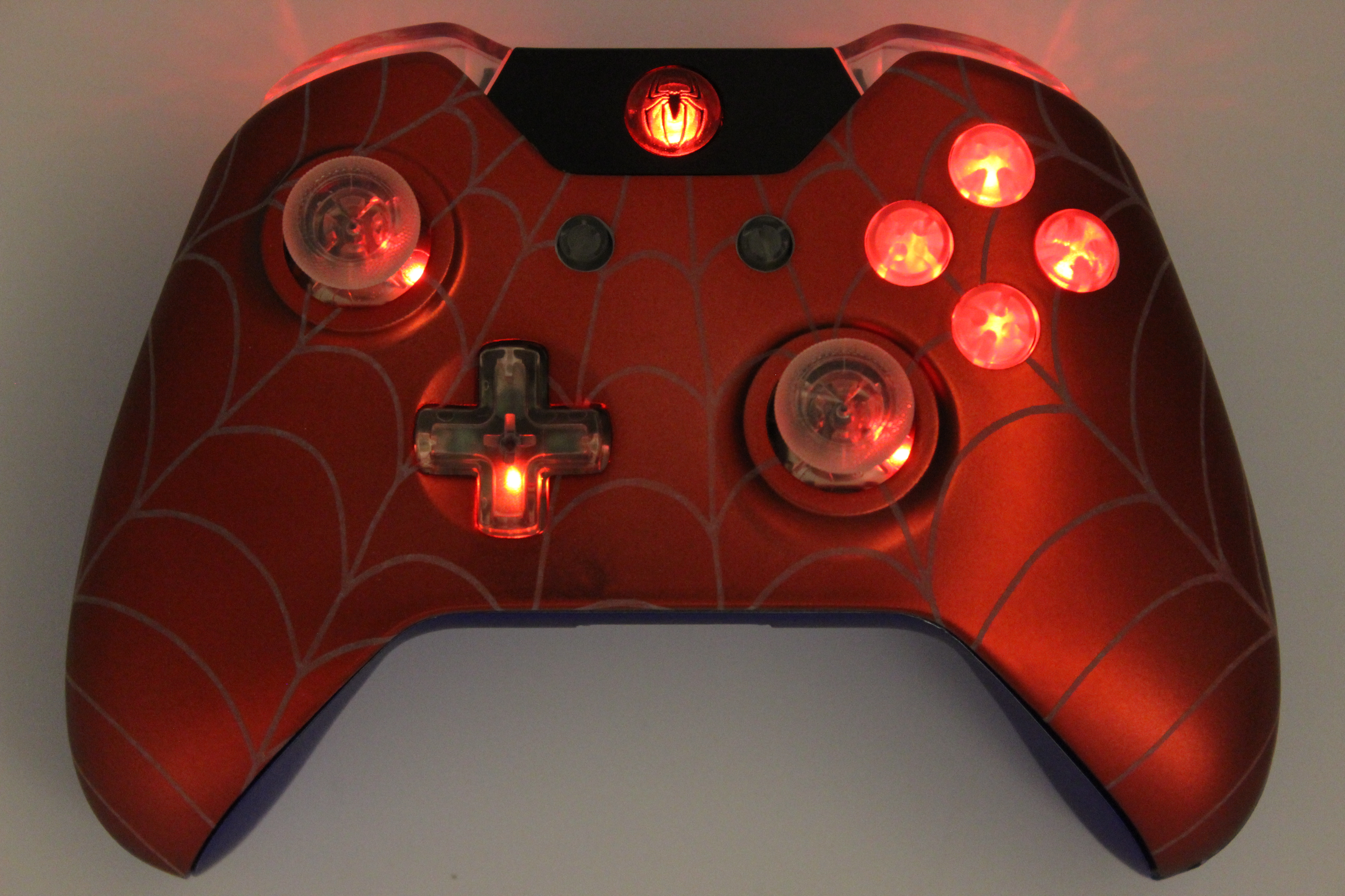 Bookmark and Share: Red Chrome White Webs Lit Xbox One Controller 29