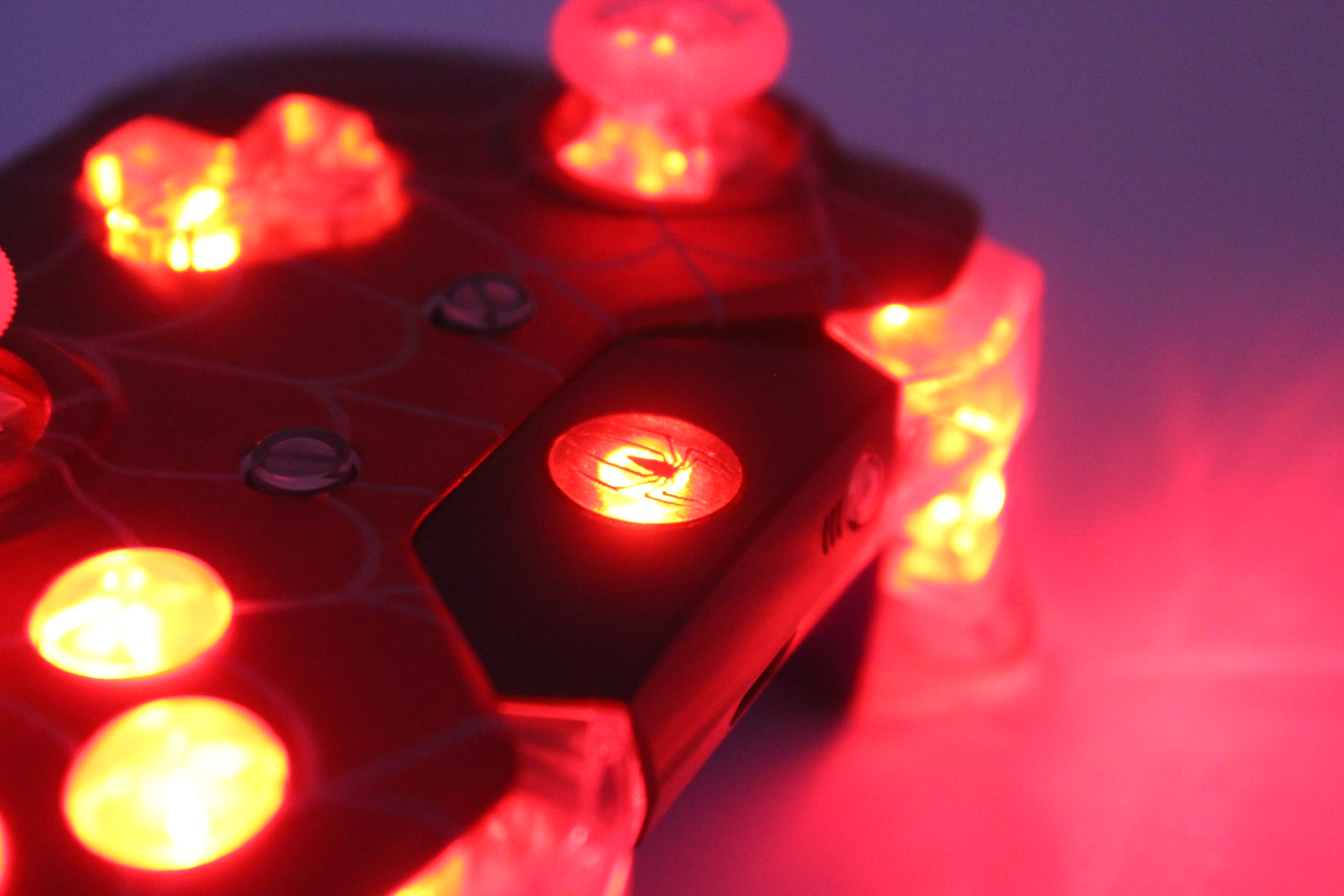 Red Chrome White Webs Lit Xbox One Controller photos and movies