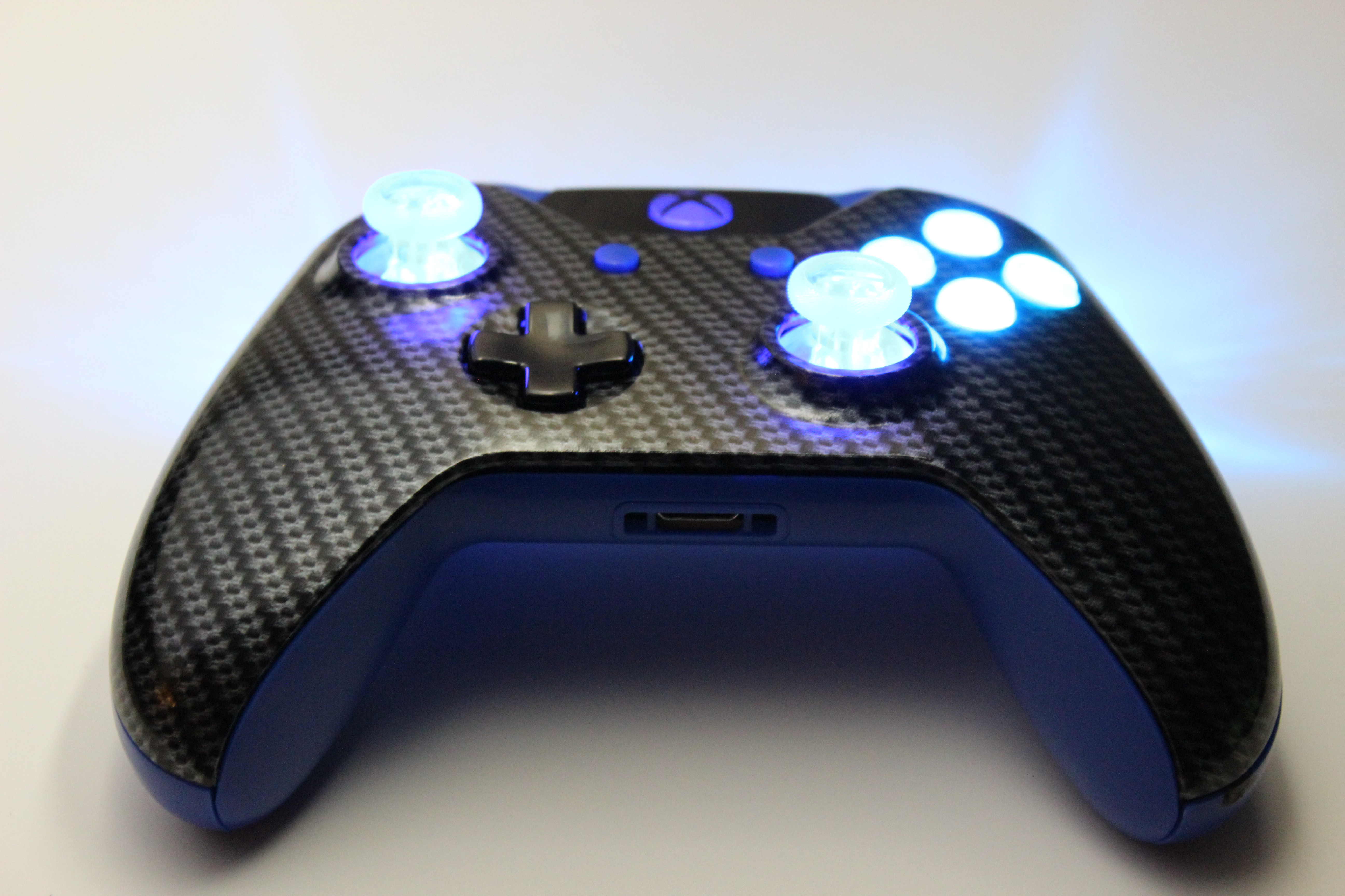 Silver Carbon Fiber and Blue Lit Xbox One Controller 13
