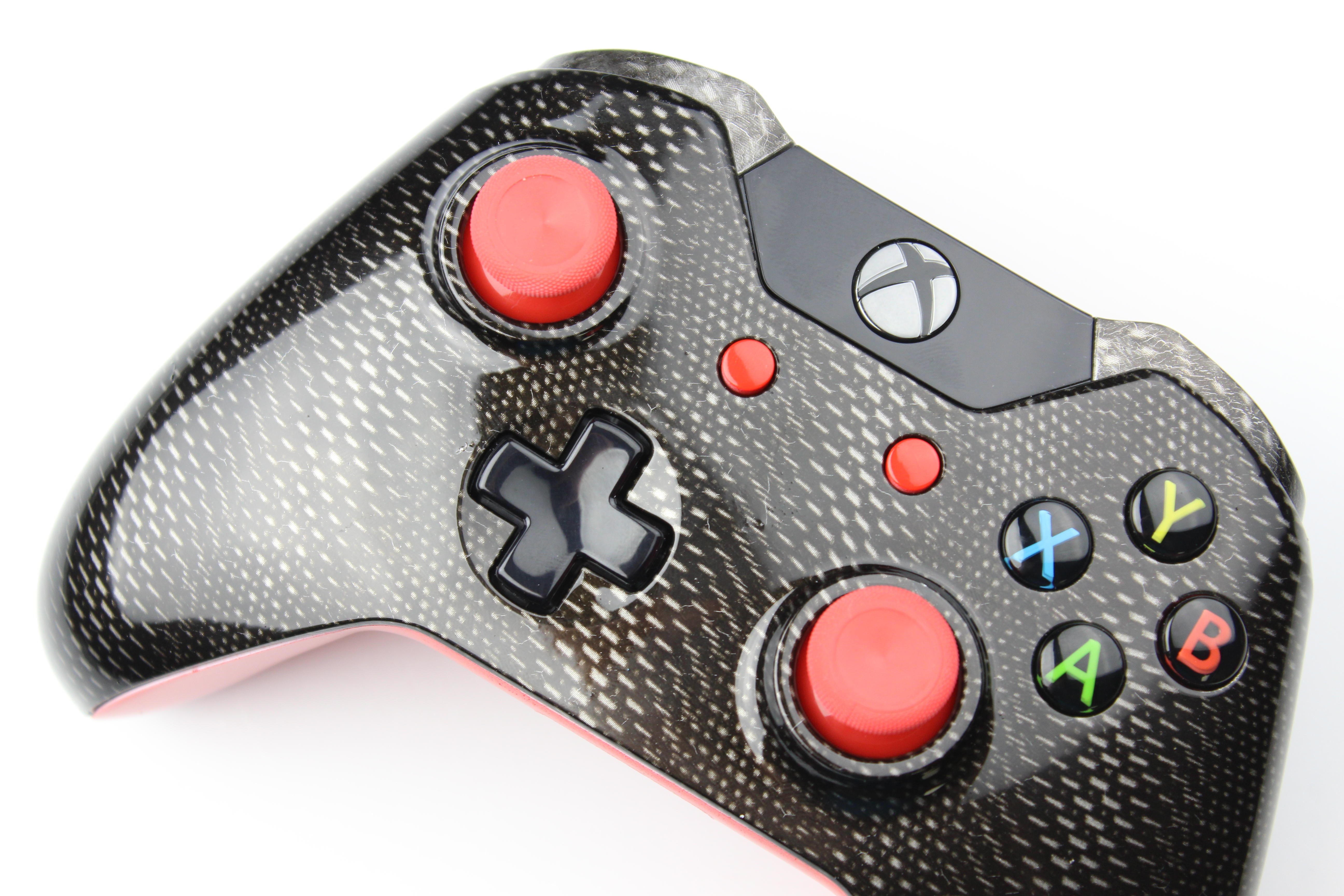 Silver Cyber Carbon Fiber and Red Xbox One Controller photos and movies