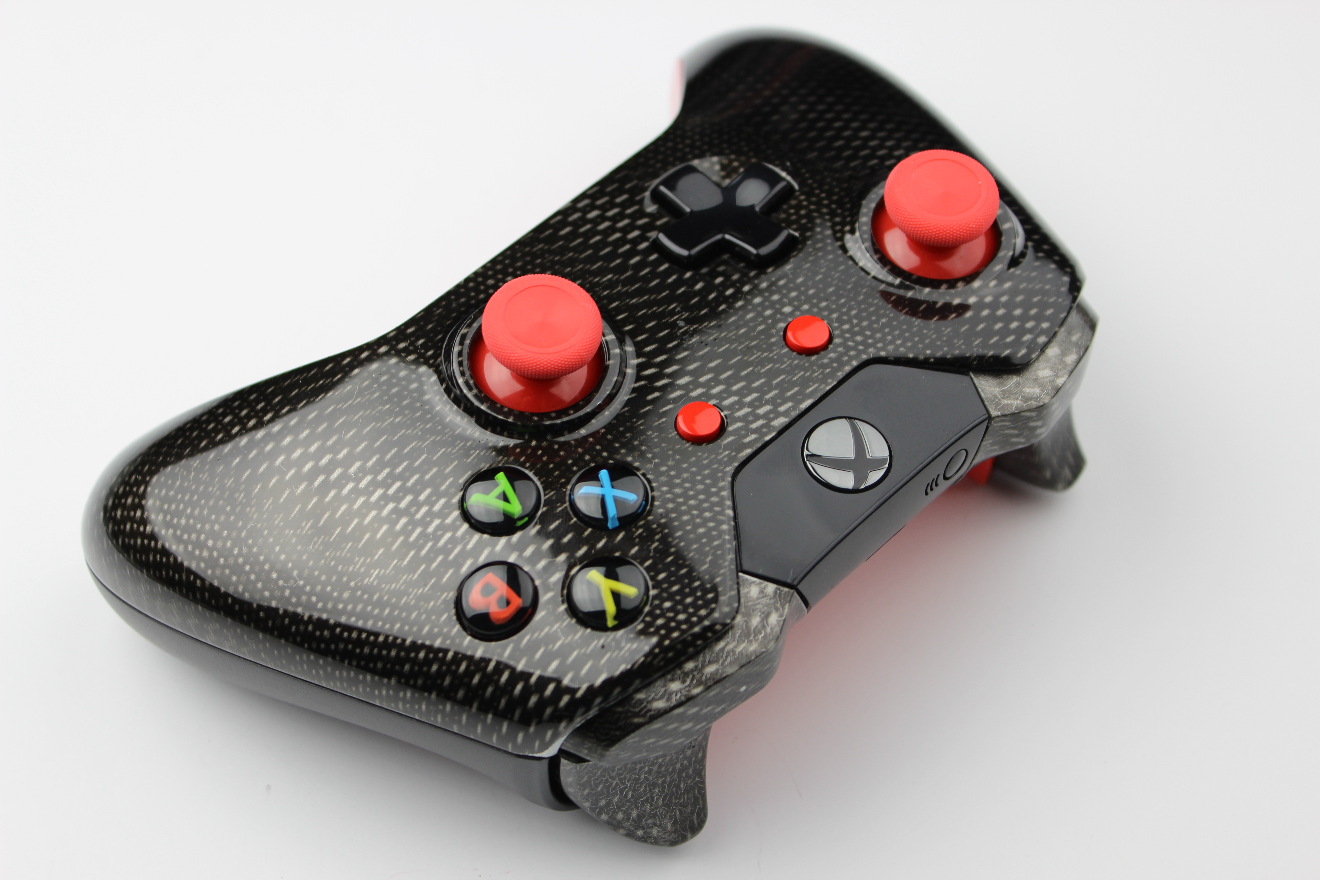 Silver Cyber Carbon Fiber and Red Xbox One Controller photos and movies