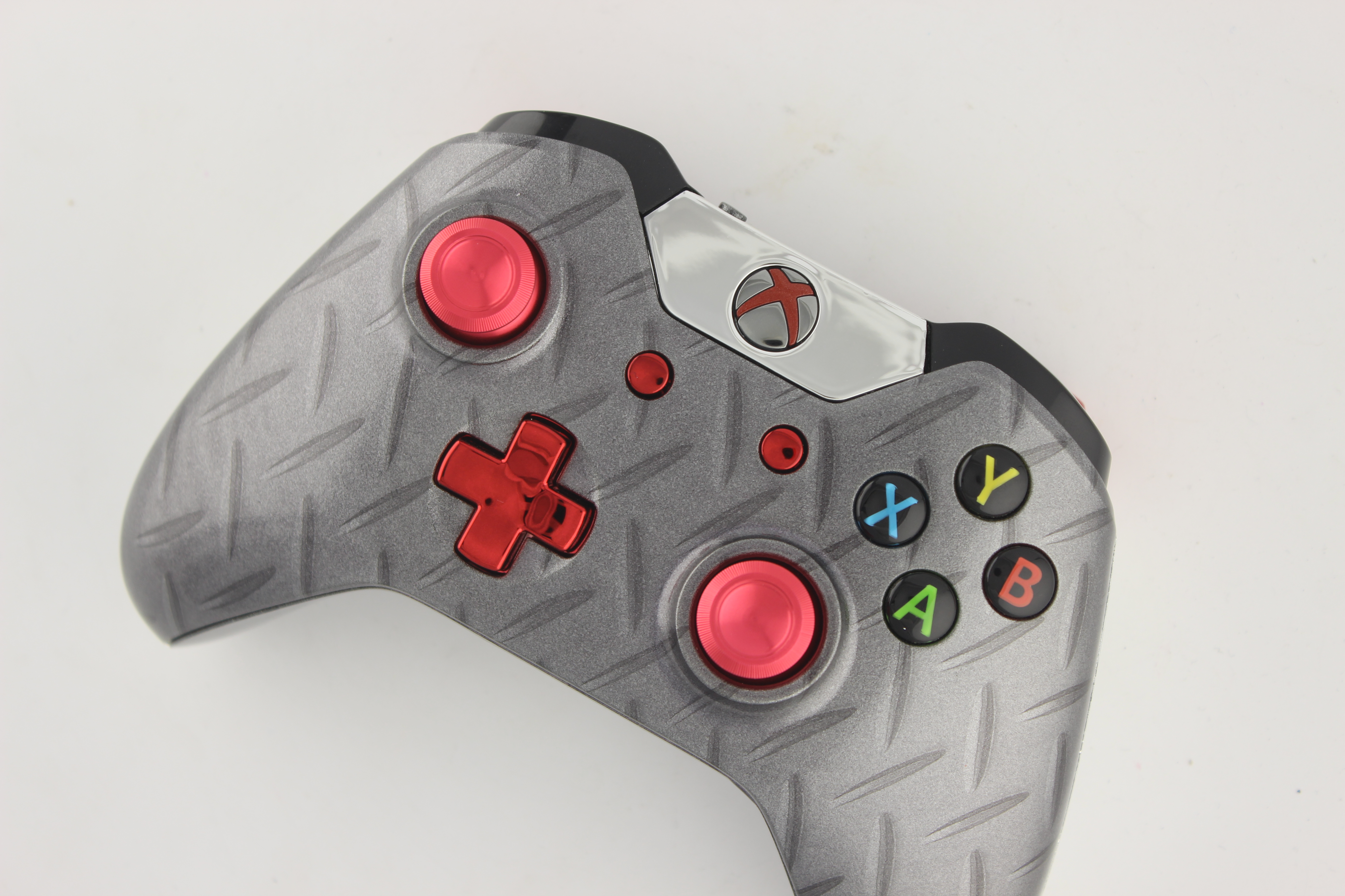 Silver Diamond Plate and Red Chrome Xbox One Controller photos and movies