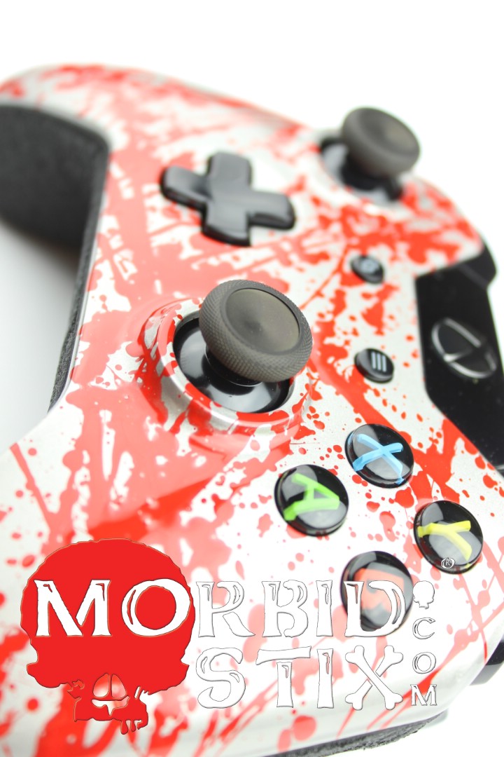 Silver with Red Splatter Xbox One Controller photos and movies