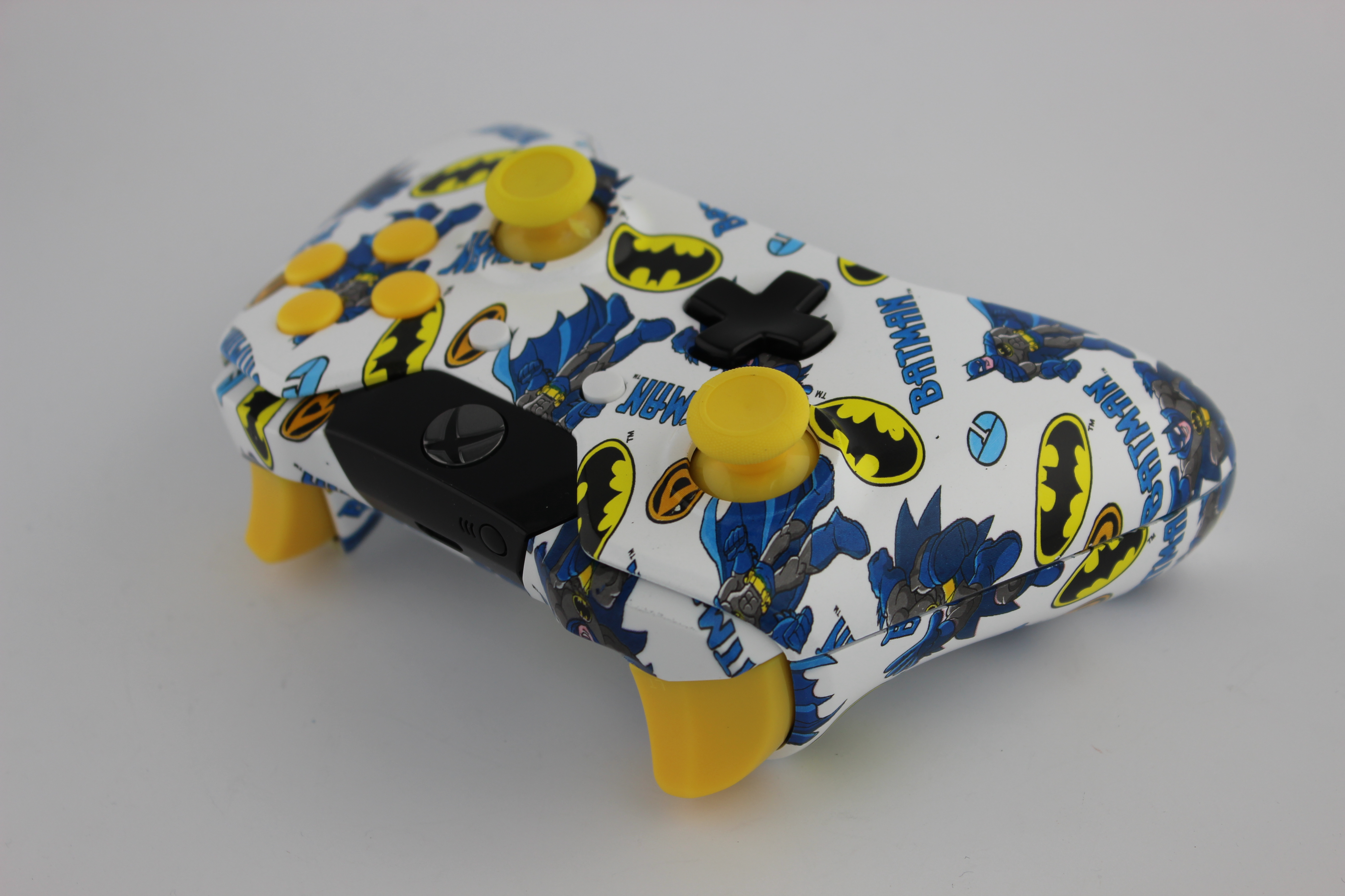 White Batman Xbox One Controller with Yellow Buttons
