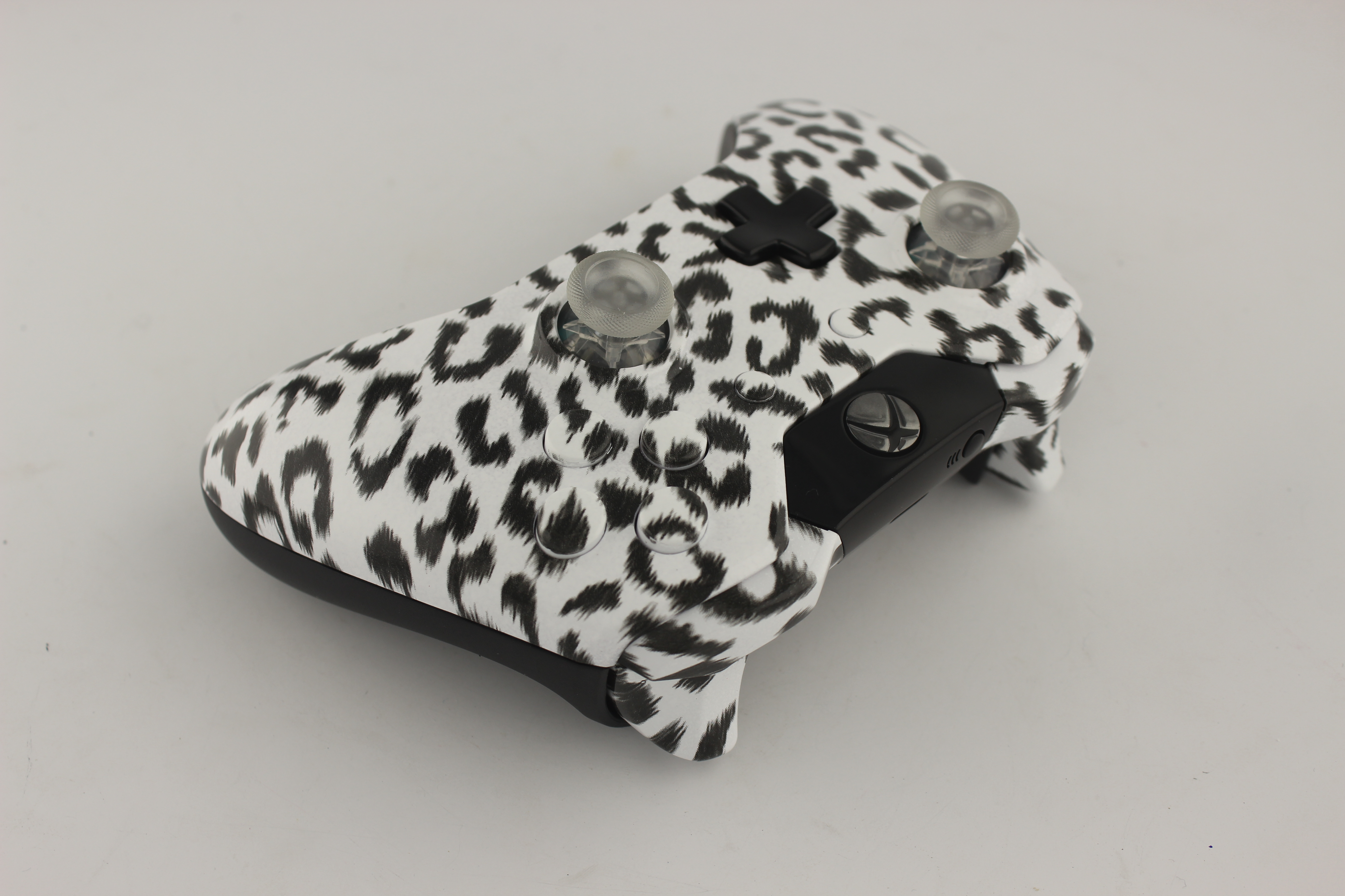White Naughty Leopard Xbox One Controller with Lit Sticks