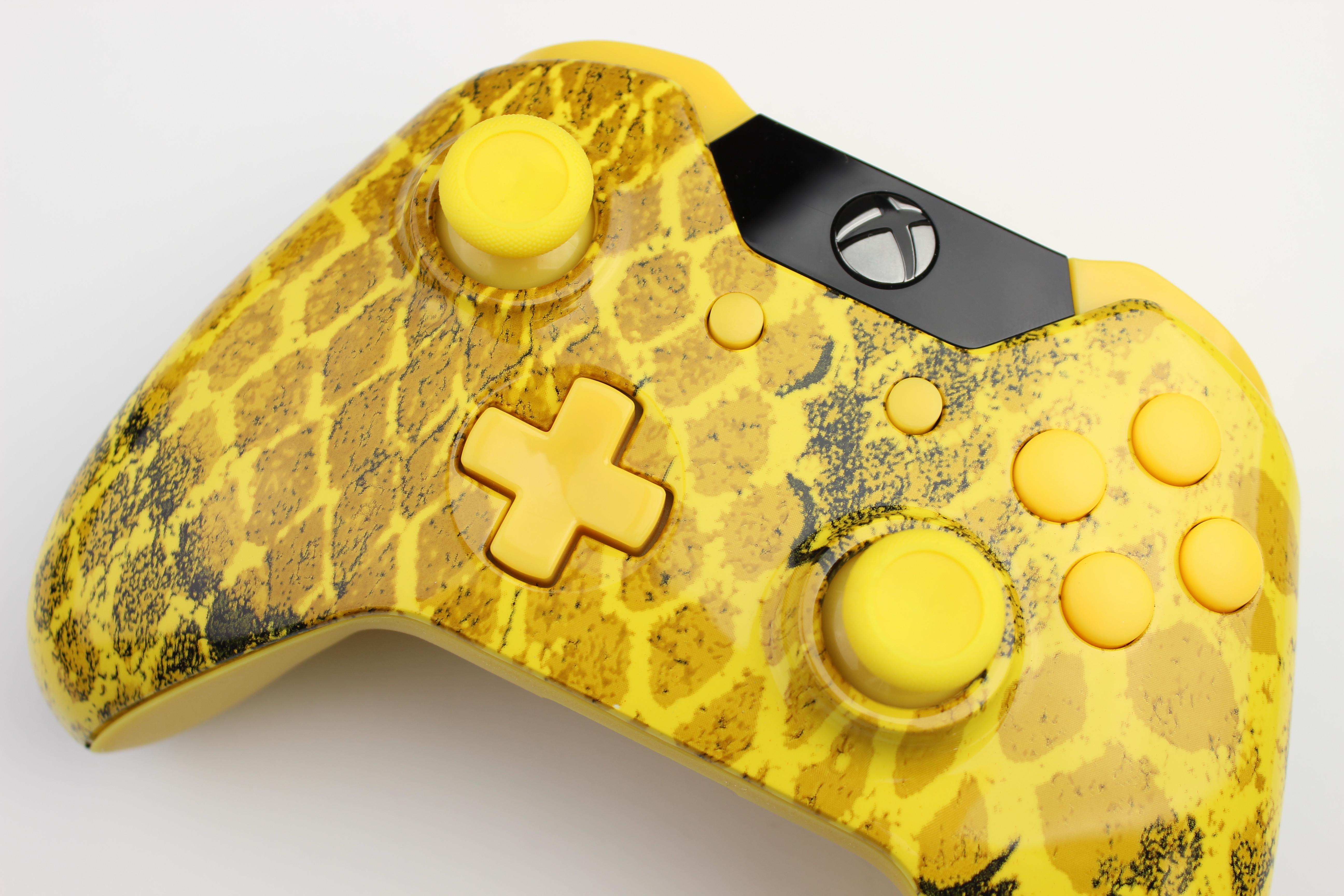 Yellow and Brown Snakeskin Illusion Xbox One Controller with Yellow Buttons photos and movies